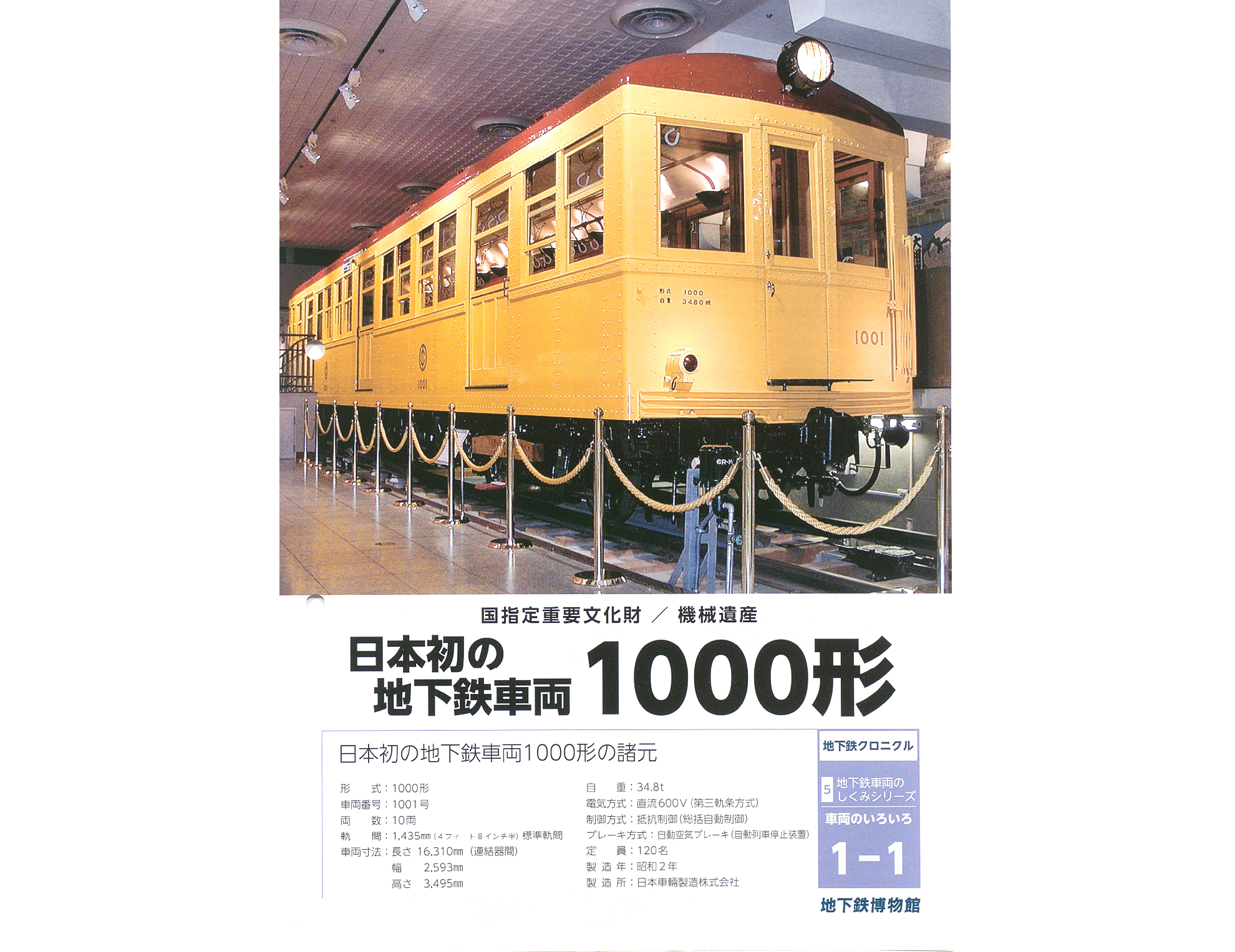 この電車は1927(昭和2)年12月30日に日本で初めての地下鉄が上野~浅草間に開通したとき使用されていた第一号車です。地下鉄開業以来約40年間活躍した電車で、2017(平成29)年に「国の重要文化財」に指定されました。